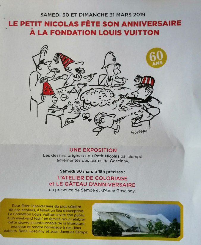 Les 60 ans du Petit Nicolas à la Fondation Louis Vuitton ce samedi 30 et dimanche 31 mars 2019 23 Mar 2019 / culturevsnews Partager : Cliquer pour partager sur X(ouvre dans une nouvelle fenêtre) X Cliquez pour partager sur Facebook(ouvre dans une nouvelle fenêtre) Facebook J’aime chargement… Similaire